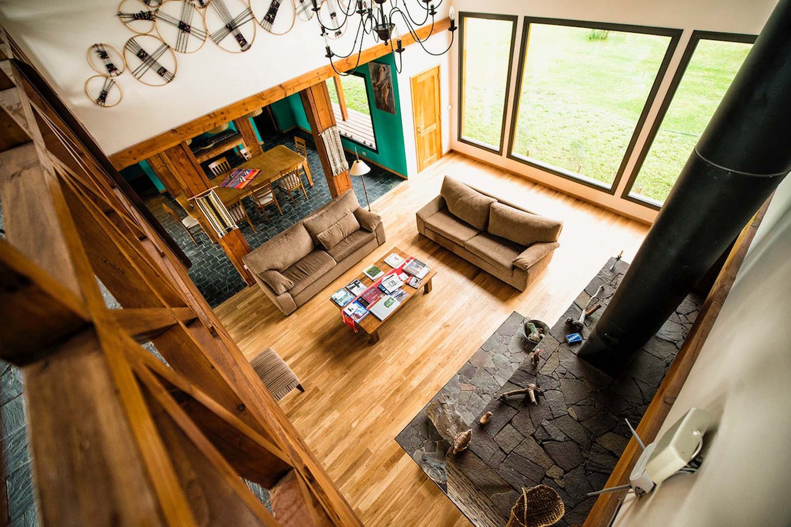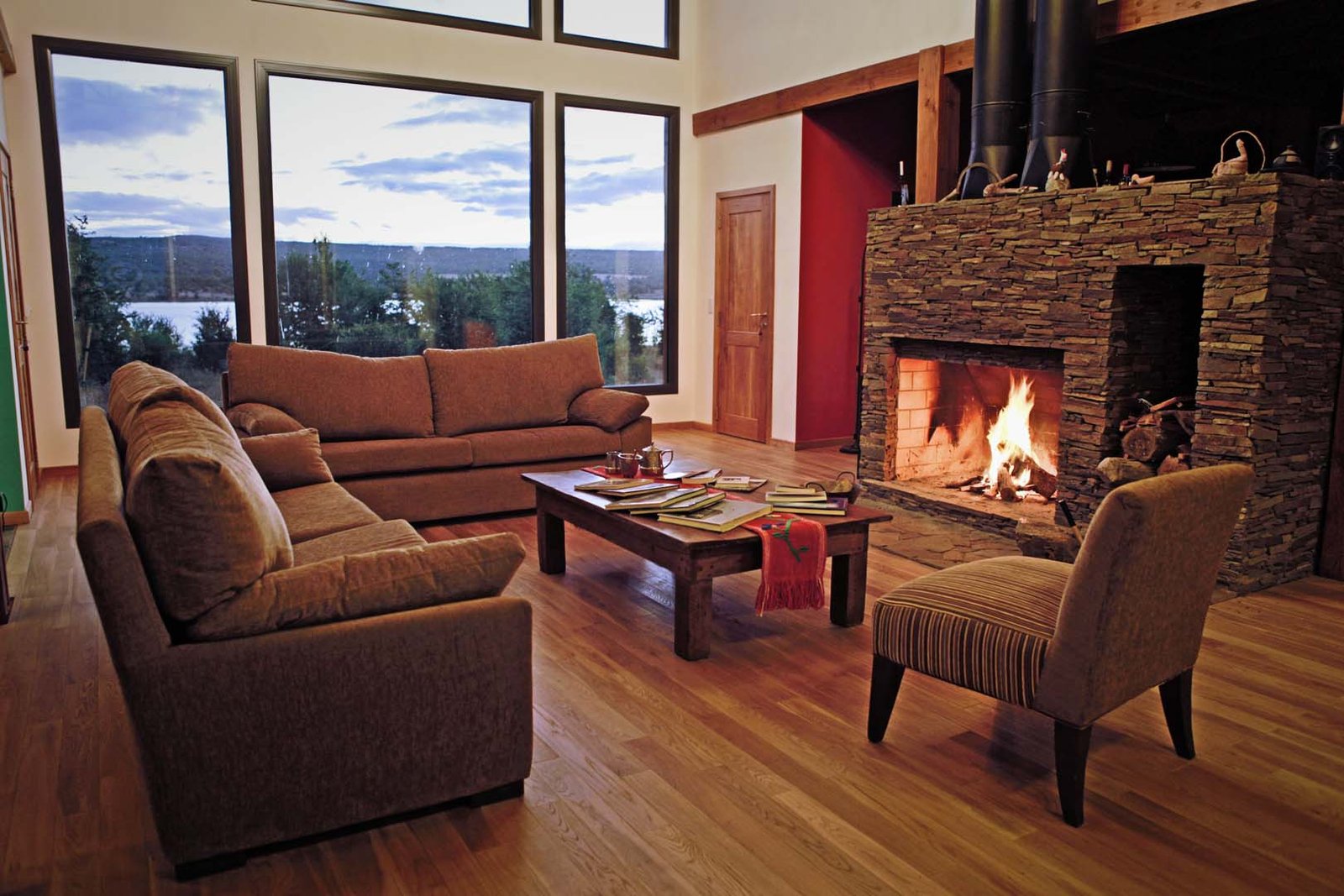 With a modern Patagonic style it features six lake view suites within the main building which is only one hundred yards from the lakefront. It also includes a spacious living room with high ceilings and fireplace, dining room, bar and wader room all suited for savvy fishermen.